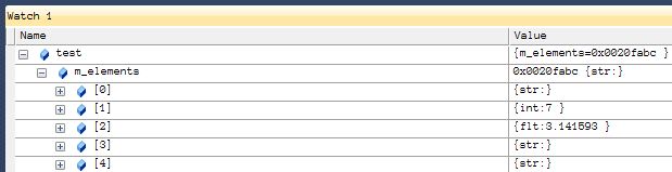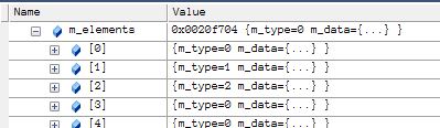 similar to before setup a basic console project and drop in this code. Compile and run to the breakpoint and drop “test” into your watch window opening up the m_elements member… you should see something like.