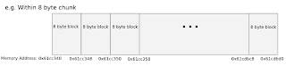 Notice that the large byte chuck is located in the smaller memory address for proper byte alignment. And within each chunk, it is divided into equally sized block for each particular size allocation: